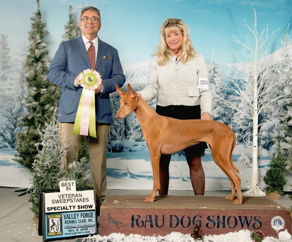 Won the Veteran Sweepstakes in an entry of 14 from the 11 years and over class at the Pharaoh Hound Club of America Eastern Specialty!
