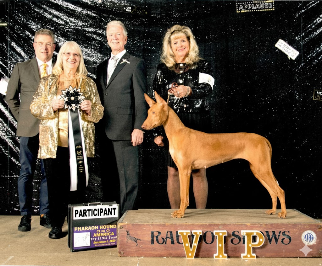 Ranked as the #2 AKC Pharaoh Breed, #5 All-Breed for 2024 which qualified her to compete in the Pharaoh Hound Club of America Top 15 VIP event.
